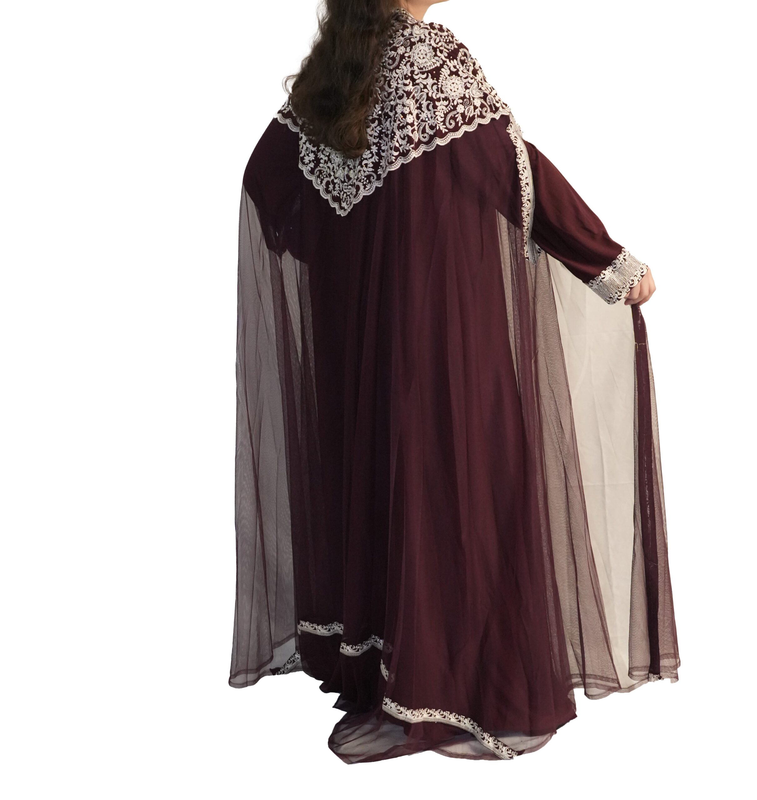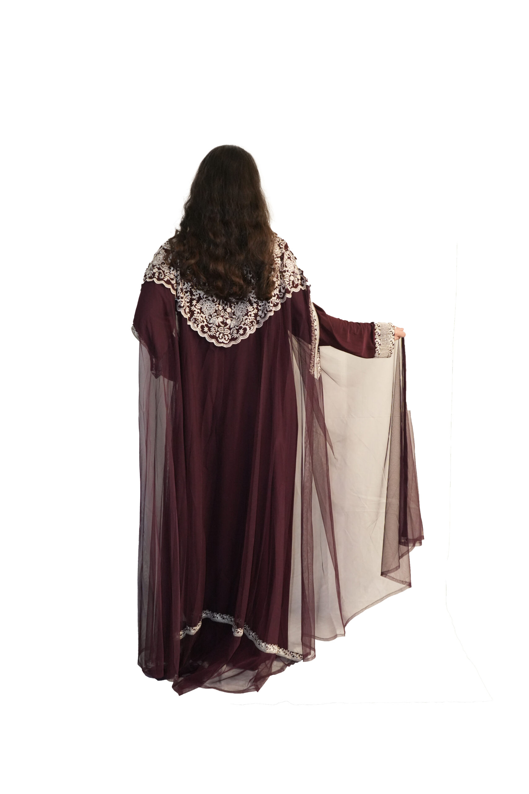 De bisht is vast te zetten met drukknoopjes op de jurk.