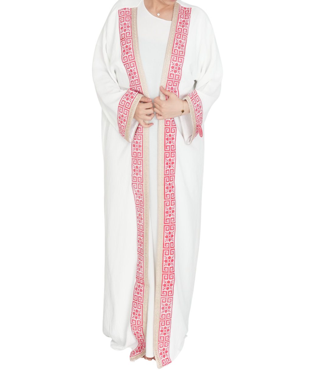 Witte bisht, afgewerkt met rood en gouden handgemaakt borduurwerk.